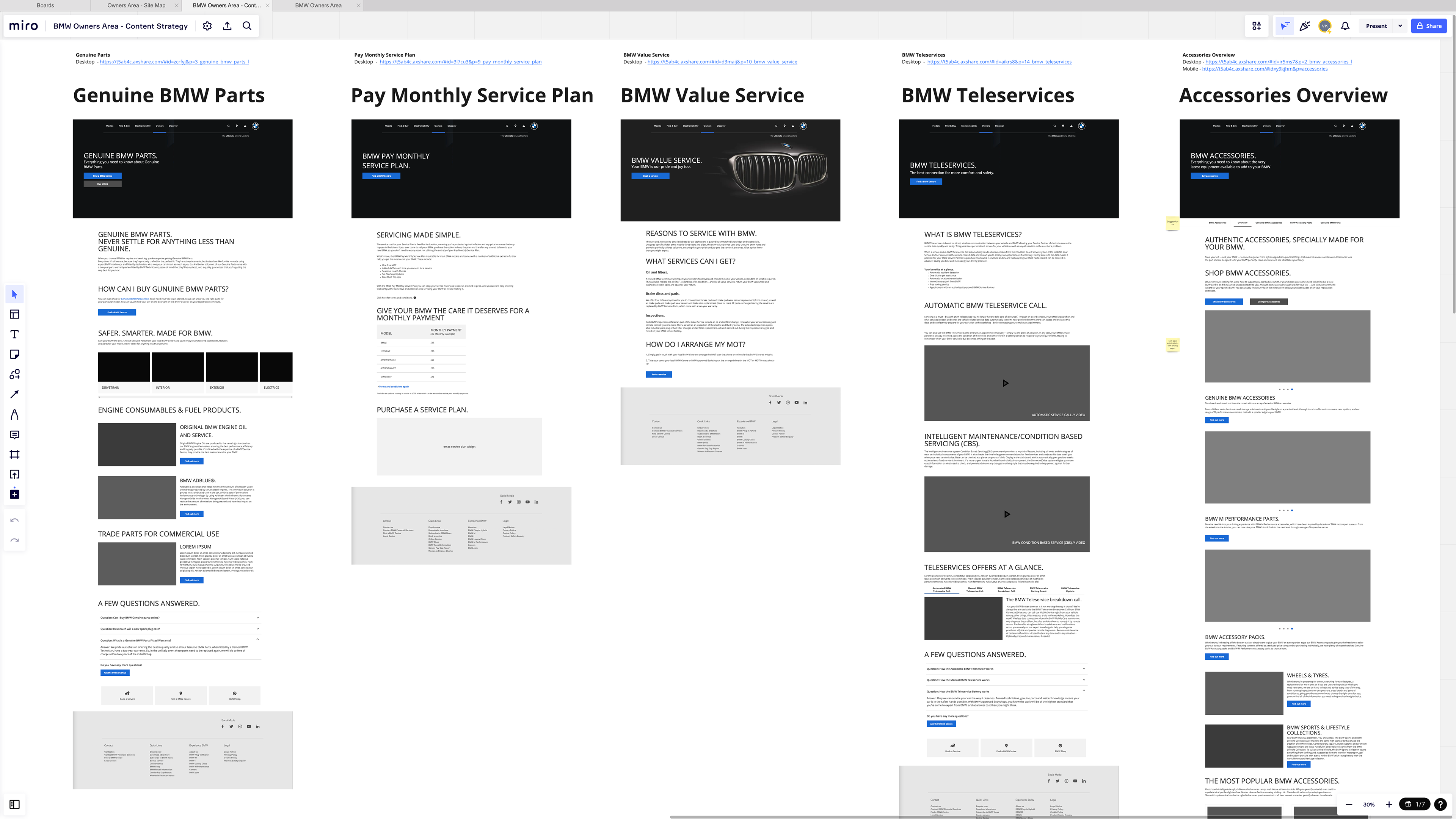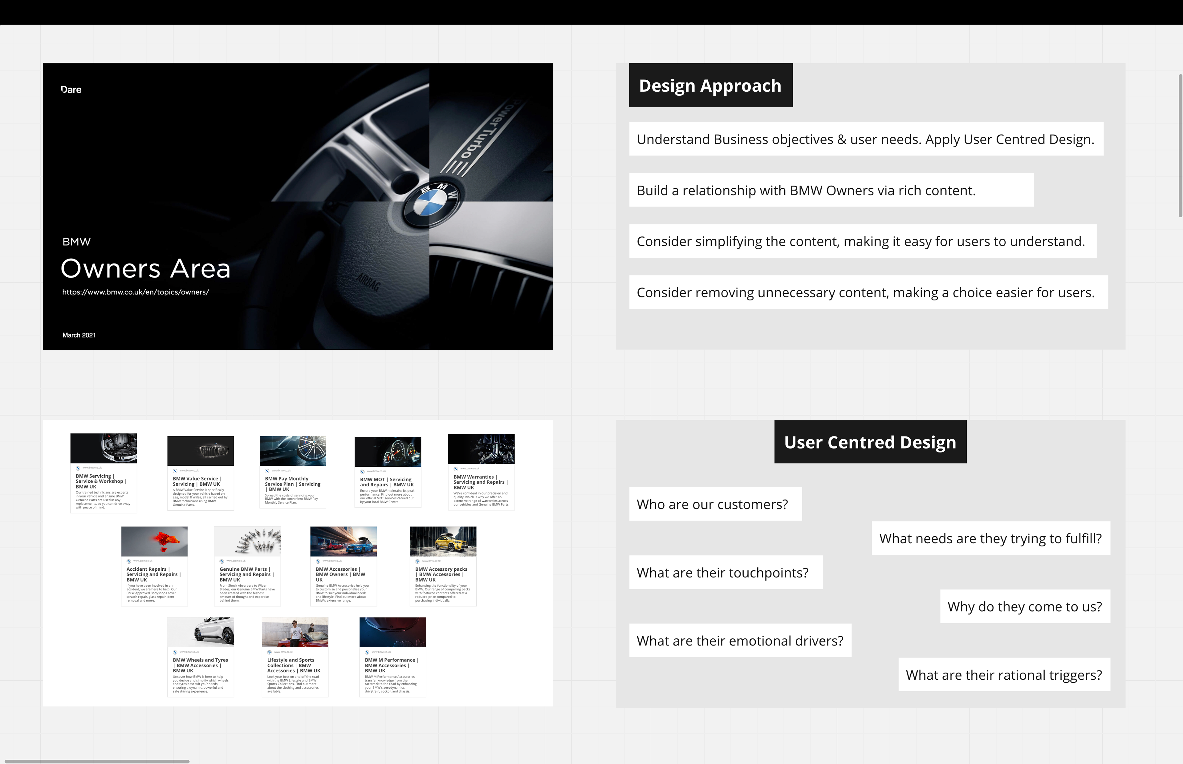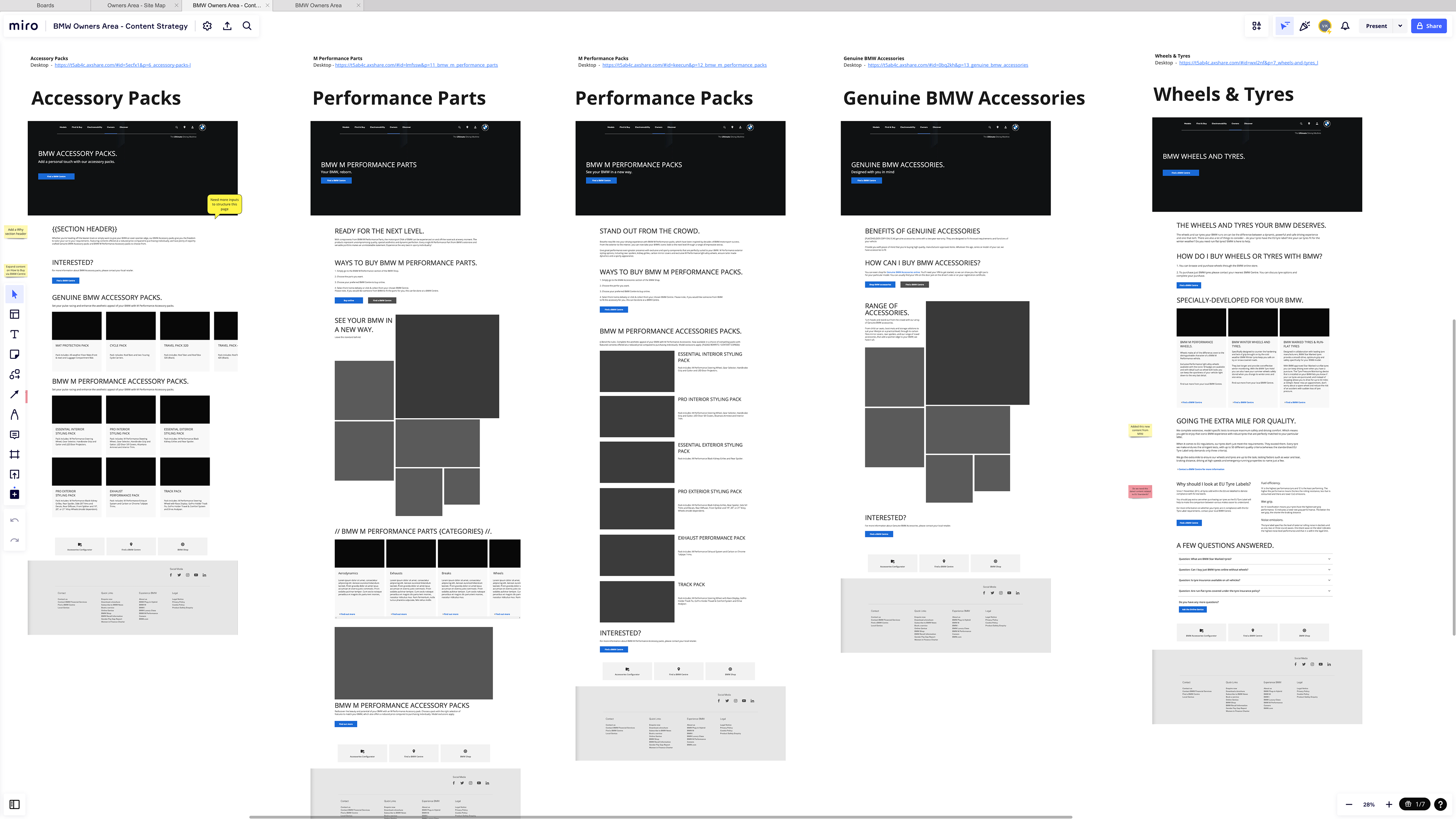 Showroom Page Structure analysed to Inform Owners Area of the website