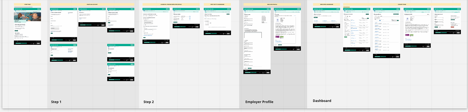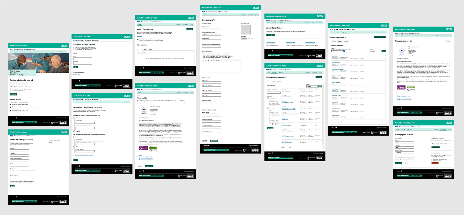 Page Flows for Core Service used by Service Providers (Recruiters) & Job Seekers (Care Providers)