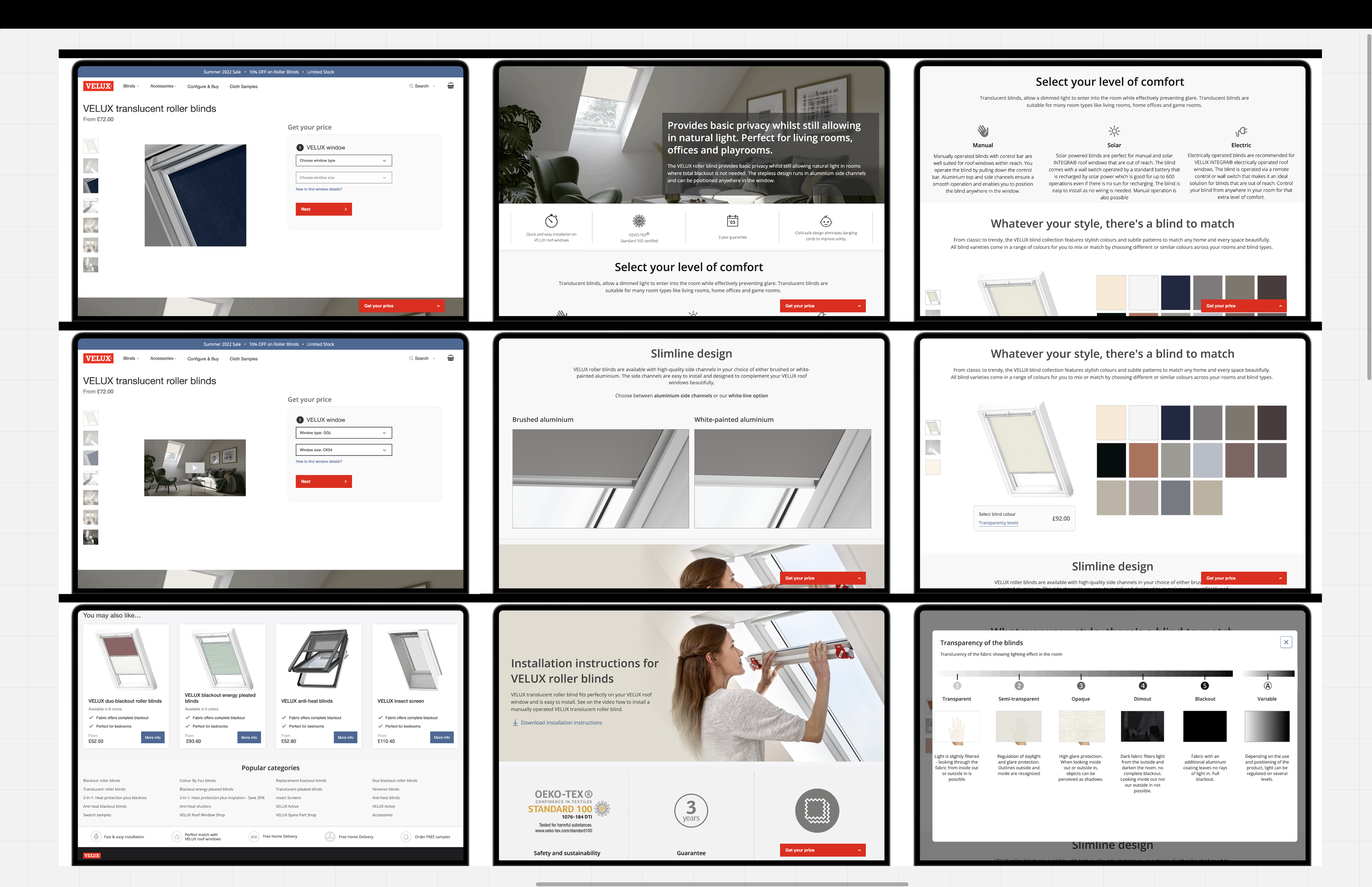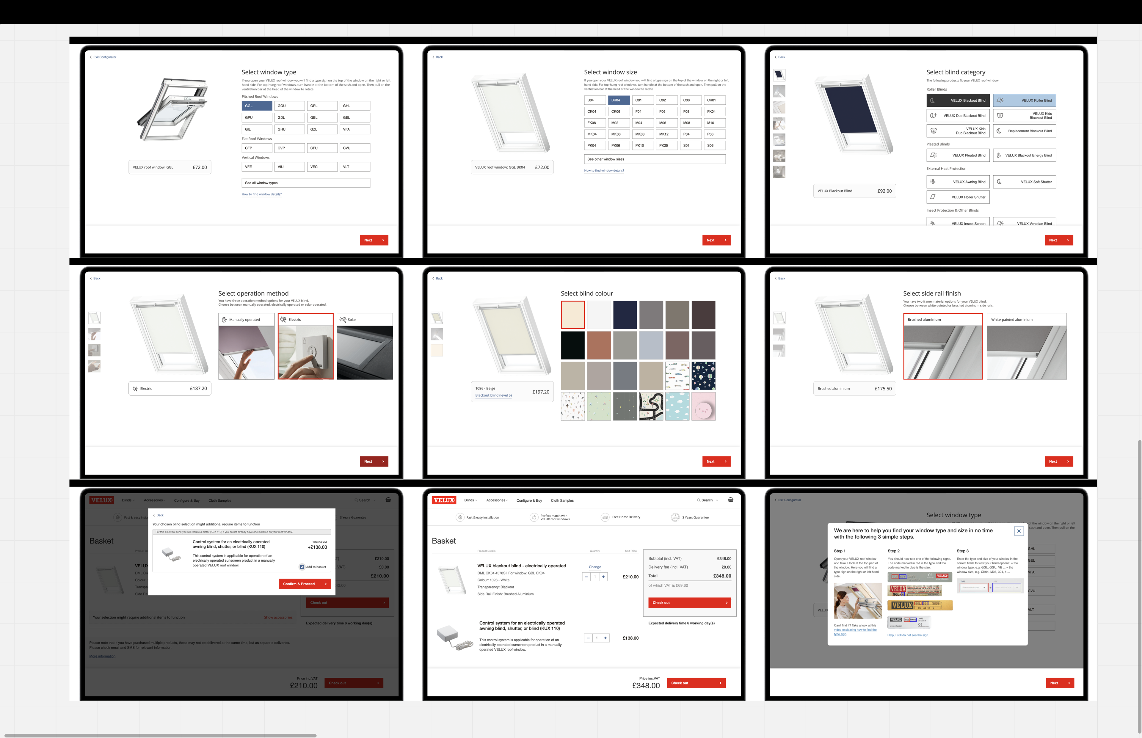 I collaborated with an agency focused on growth and conversion, as well as a Conversion Rate Optimisation specialist, to enhance the Velux blinds UK website. I conducted an initial analysis and audited the primary user journeys. Additionally, I developed ideas and user flows, facilitated weekly workshops with stakeholders, designed concepts and interactive prototypes, and completed several iterations before achieving design validation with the core team. The proposed design enhancements greatly influenced the organisation's design process and tool usage. I successfully delivered a new "product configurator" catering to all types of users and their needs during this part-time project.